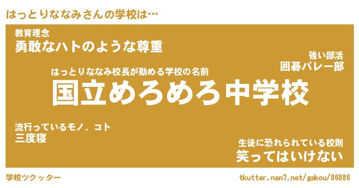 | 胡散臭い通販商品みたいなあだ名 | 『必ず成功する霊験あらたかなお札…その名も「はっとりななみ」』 |