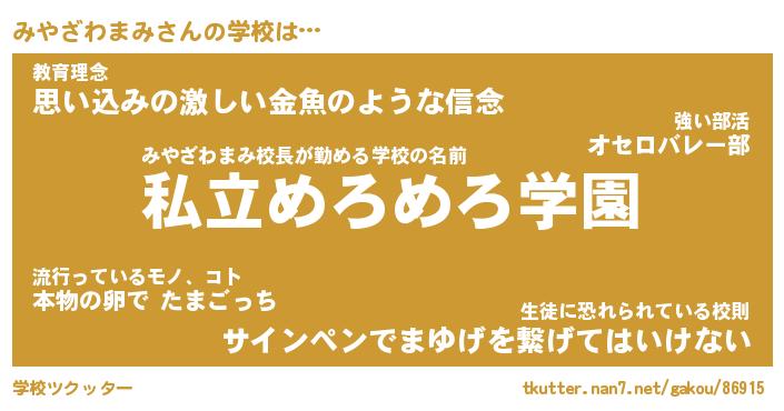 | 男性向けラノベタイトル風あだ名 | 『みやざわまみの憂鬱』 |