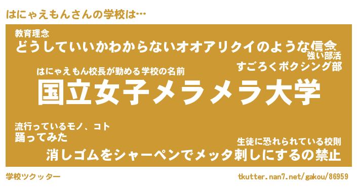 | ヘコむあだ名 | 『はににー』『なまこ酢』『はに太郎』 |