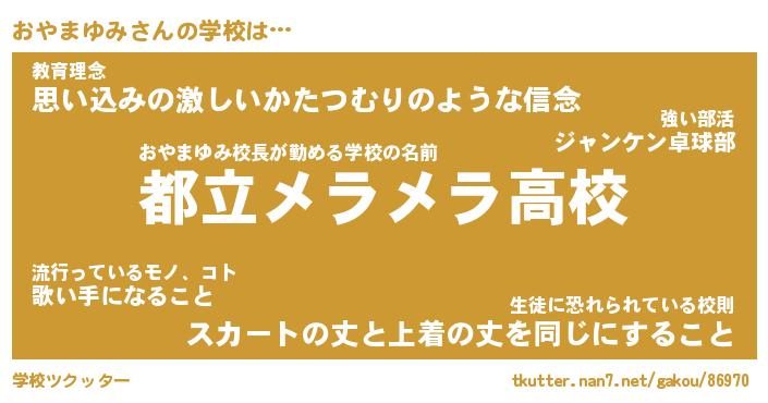 | ファンタジー風あだ名 | 『オヤフェル』『エターナルオヤマユミー』 |