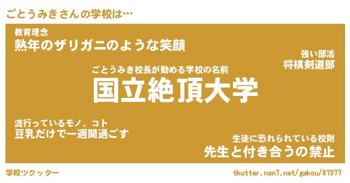 | ヒーロー風カッコイイあだ名 | 『スーパーゴトウミキ』『天弓騎士ゴト』 |