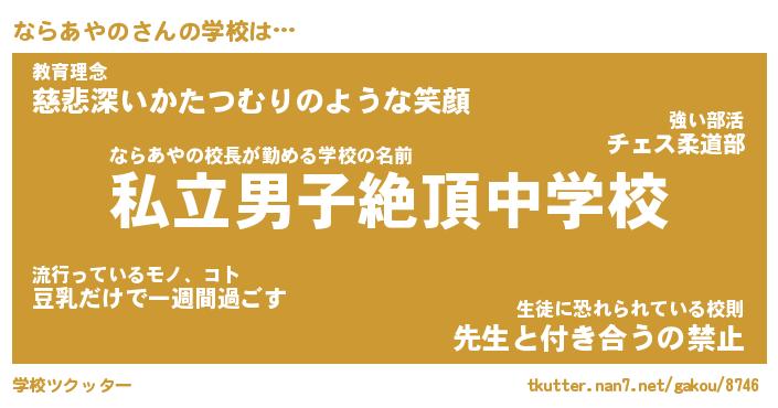 | ならあやの先生が勤める学校名『県立肉球中学校』 |
