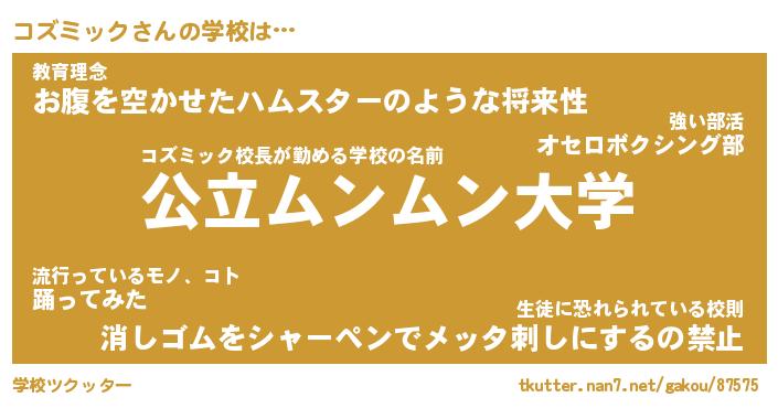 | 肩書あだ名 | 『コズミック店長』『コズミック国家主席』 |