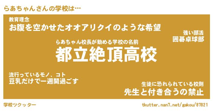 | らあちゃん先生が勤める学校名『市立肉球高校』 |