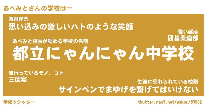 | 意味不明あだ名 | 『ペロリンあべみと』『永久保存あべみと』 |