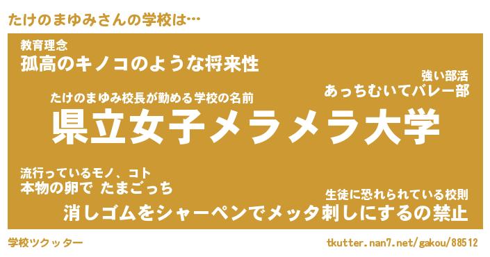 | 肩書あだ名 | 『たけのまゆみ社長』『たけのまゆみ団長』 |