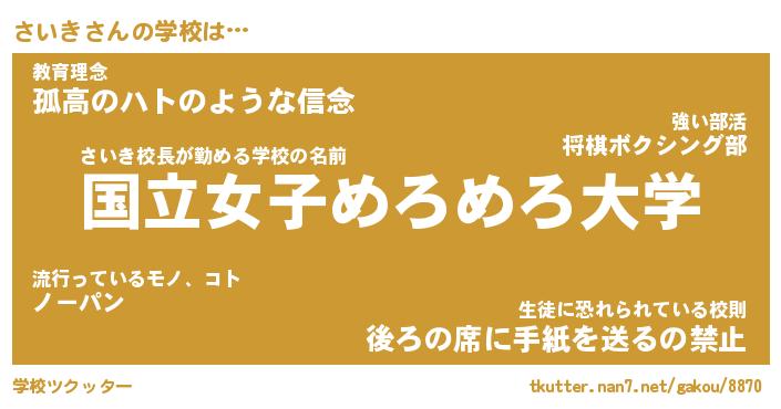 | 意味不明あだ名 | 『ペロリンさいき』『さいきフォーエバー』 |