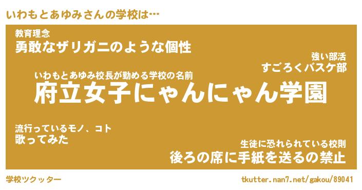 | 恥ずかしいあだ名 | 『プリティーいわもとあゆみ』『いわちん』 |