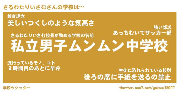| 男性向けラノベタイトル風あだ名 | 『さるわたりいさむの憂鬱』 |
