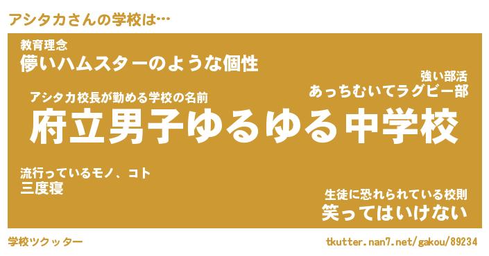 | ファンタジー風あだ名 | 『アシフェル』『エターナルアシタカー』 |