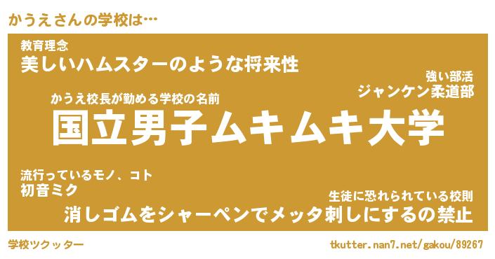 | ヒーロー風カッコイイあだ名 | 『スーパーカウエ』『ウルトラかうえマン』 |
