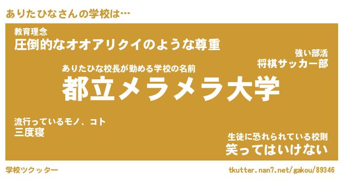 | ファンタジー風あだ名 | 『アリフェル』『エターナルアリタヒナー』 |