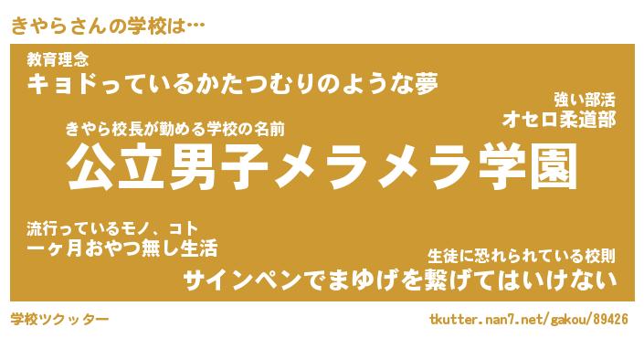| ヒーロー風カッコイイあだ名 | 『スーパーキヤラ』『ウルトラきやらマン』 |