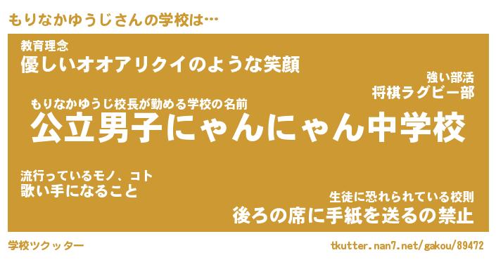 | 男性向けラノベタイトル風あだ名 | 『もりなかゆうじの憂鬱』 |