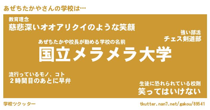 | 肩書あだ名 | 『あぜちたかや社長』『あぜちたかや団長』 |