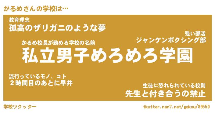 | 意味不明あだ名 | 『ペロリンかるめ』『かるめフォーエバー』 |