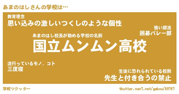 先生 あまのはし先生が勤める学校名『国立もふもふ高校