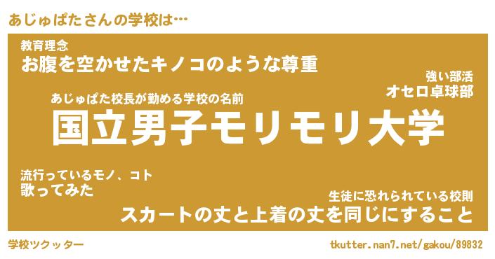 | 男性向けラノベタイトル風あだ名 | 『あじゅぱたの憂鬱』 |