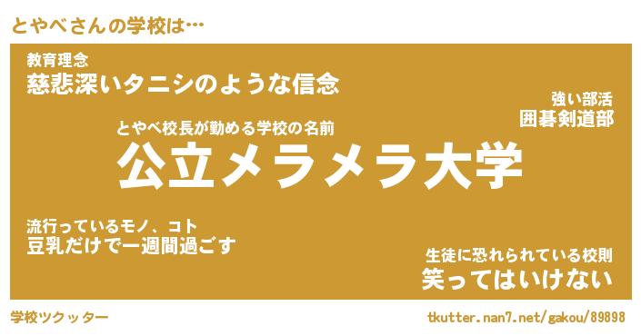| ファンタジー風あだ名 | 『トヤフェル』『エターナルトヤベー』 |