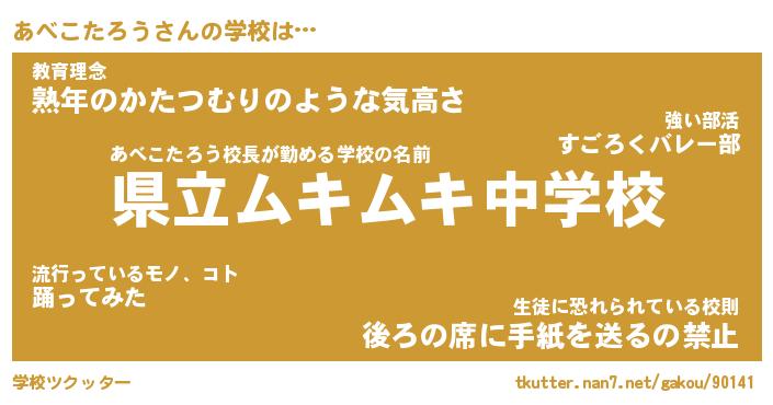 | 男性向けラノベタイトル風あだ名 | 『あべこたろうの憂鬱』 |