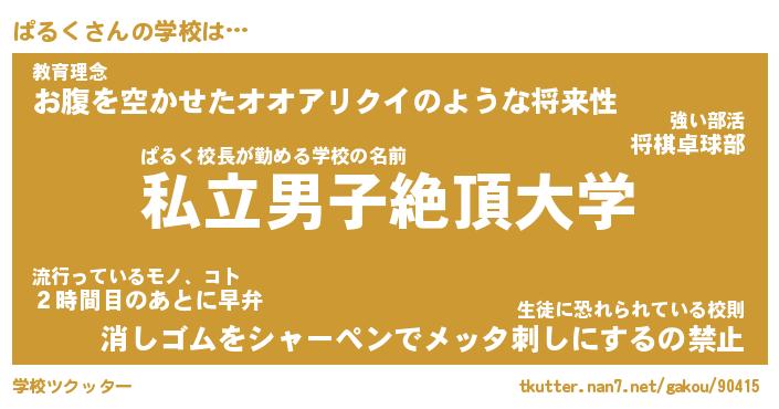 | 男性向けラノベタイトル風あだ名 | 『ぱるくの憂鬱』 |