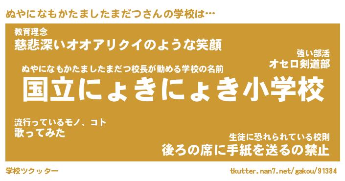 | 欧米人風あだ名 | 『マイケルぬやになもかたましたまだつ』 |
