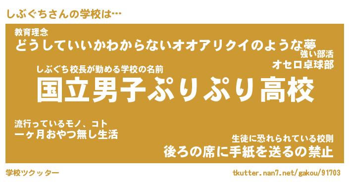 | 男性向けラノベタイトル風あだ名 | 『しぶぐちの憂鬱』 |