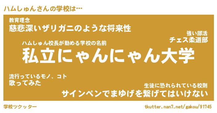 | 男性向けラノベタイトル風あだ名 | 『ハムしゅんの憂鬱』 |