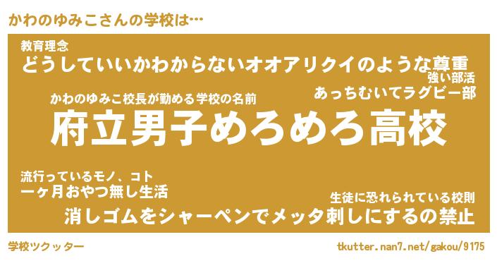 女子向けラノベタイトル風あだ名 | 『かわのゆみこ姫と円卓の騎士』 |