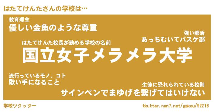 | ヒーロー風カッコイイあだ名 | 『スーパーハタテケンタ』『暗黒騎士ハタ』 |