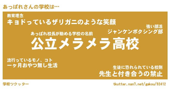 | ファンタジー風あだ名 | 『アッフェル』『エターナルアッパレー』 |