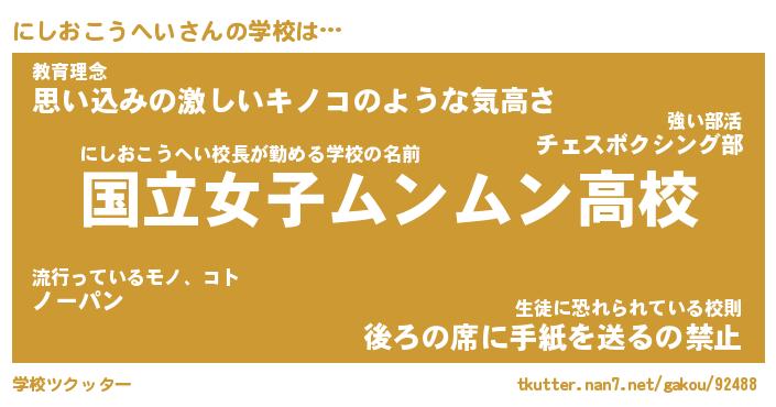 | 女子向けラノベタイトル風あだ名 | 『誰かこのにしおこうへいを説明してください! ~契約から始まるウェディング~』 |
