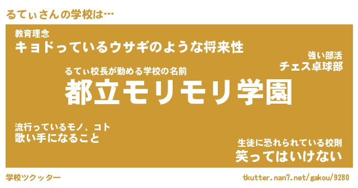 | 男性向けラノベタイトル風あだ名 | 『るてぃの憂鬱』 |