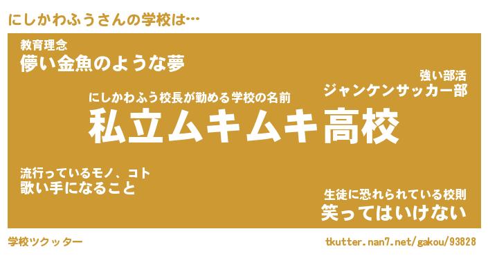 | ヒーロー風カッコイイあだ名 | 『スーパーニシカワフウ』『銀牙騎士ニシ』 |