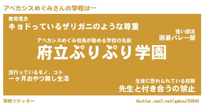 | 男性向けラノベタイトル風あだ名 | 『アベカシスめぐみの憂鬱』 |