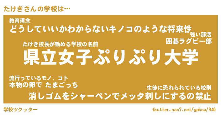 | ファンタジー風あだ名 | 『タケフェル』『エターナルタケキー』 |