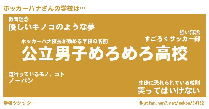 | 男性向けラノベタイトル風あだ名 | 『ホッカーハナの憂鬱』 |
