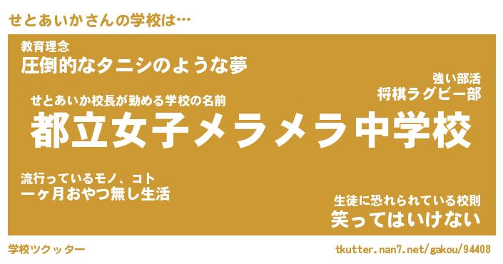 | 肩書あだ名 | 『せとあいか社長』『せとあいか総理大臣』 |