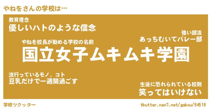 | ポケモン風あだ名 | 『ヤネチュウ』『ヤネヲダネ』 |
