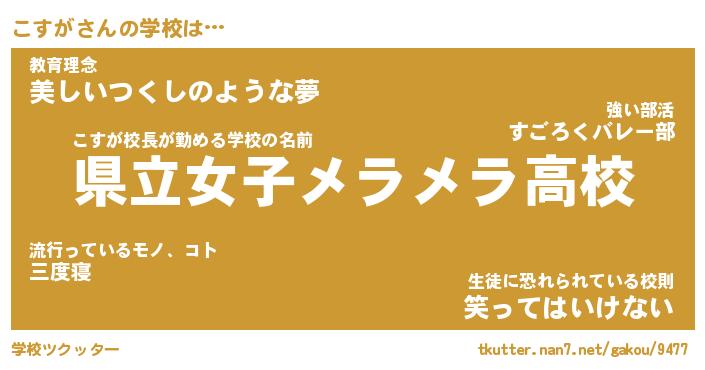 | ヒーロー風カッコイイあだ名 | 『スーパーコスガ』『ウルトラこすがマン』 |
