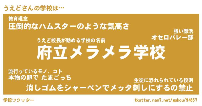 | 男性向けラノベタイトル風あだ名 | 『うえどの憂鬱』 |