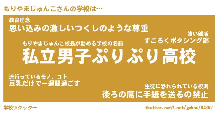| 男性向けラノベタイトル風あだ名 | 『もりやまじゅんこの憂鬱』 |