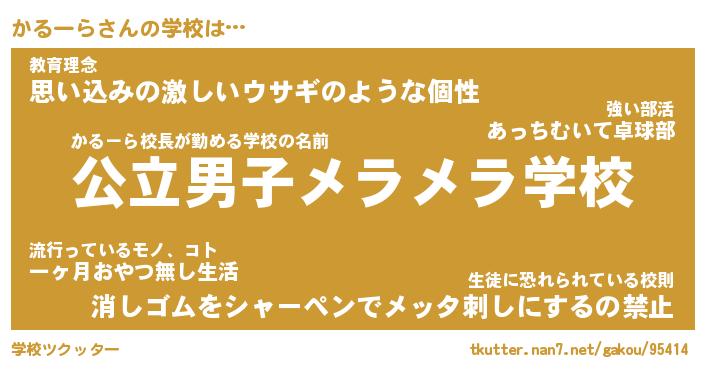 | 意味不明あだ名 | 『ペロリンかるーら』『永久保存かるーら』 |