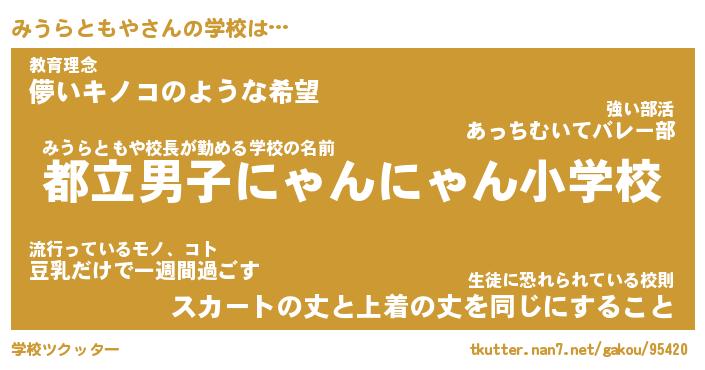 | ヒーロー風カッコイイあだ名 | 『スーパーミウラトモヤ』『銀牙騎士ミウ』 |