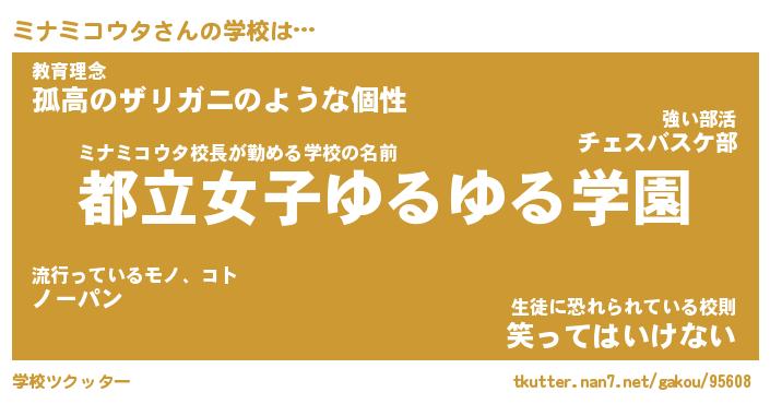 | 男性向けラノベタイトル風あだ名 | 『ミナミコウタアートオンライン』 |