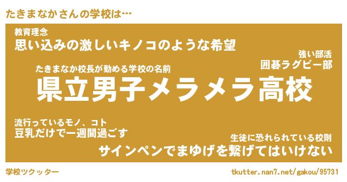 | ファンタジー風あだ名 | 『タキフェル』『エターナルタキマナカー』 |