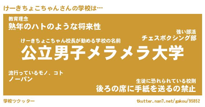 | ヘコむあだ名 | 『けーにー』『つくし』『けー太郎』 |