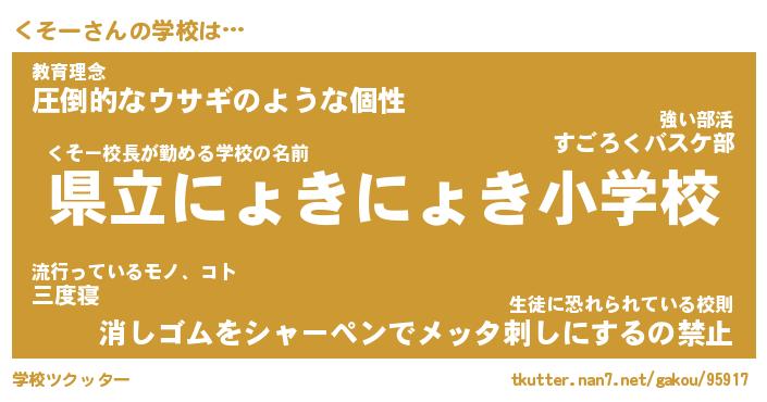 | 男性向けラノベタイトル風あだ名 | 『くそーの憂鬱』 |