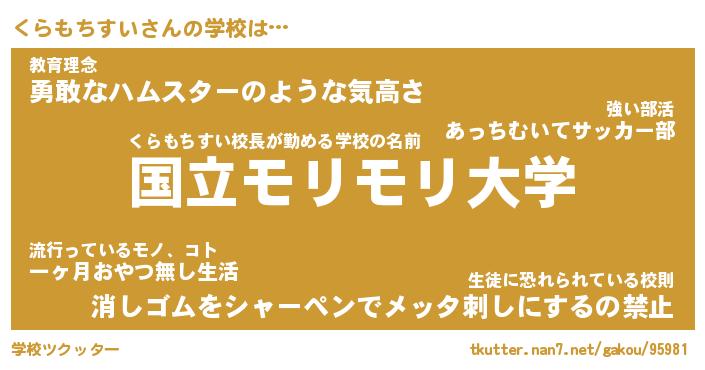 | 男性向けラノベタイトル風あだ名 | 『くらもちすいの憂鬱』 |