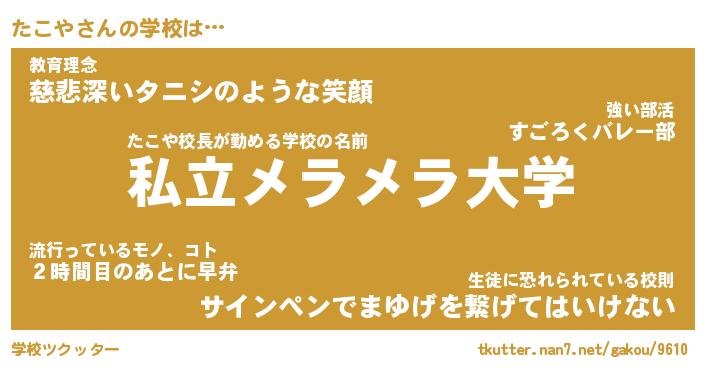 | ヘコむあだ名 | 『たこにー』『牛乳』『たこぷりん』 |